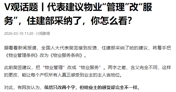 这是积极的信号,国家看到了业主的痛点,推动物业从管控型转向服务型。